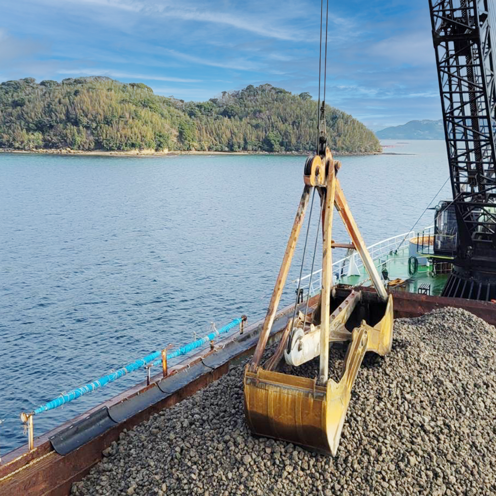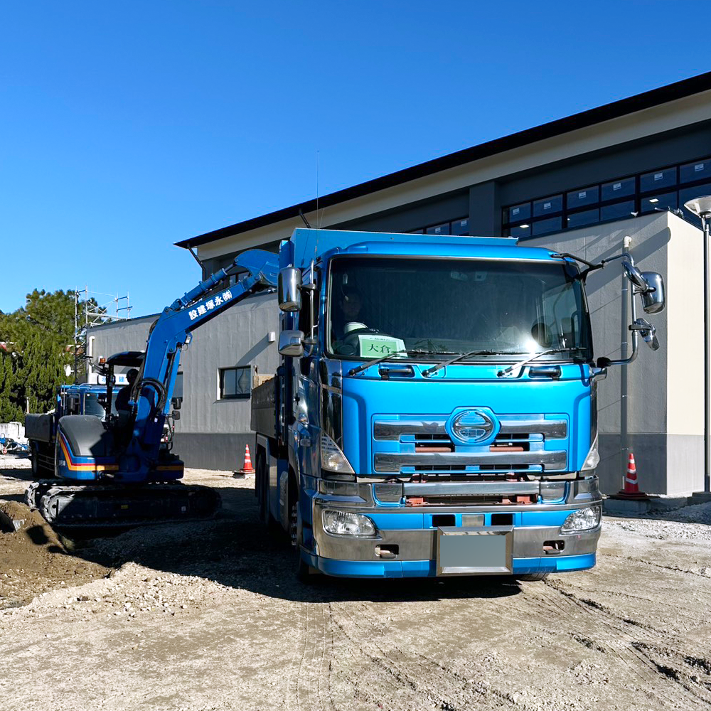 ◆ダンプや船を駆使した効率的な「資材運搬」